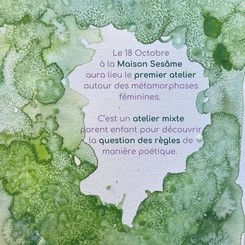 Le 18 Octobre à la Maison Sesâme aura lieu le premier atelier autour des Métamorphoses Féminines.